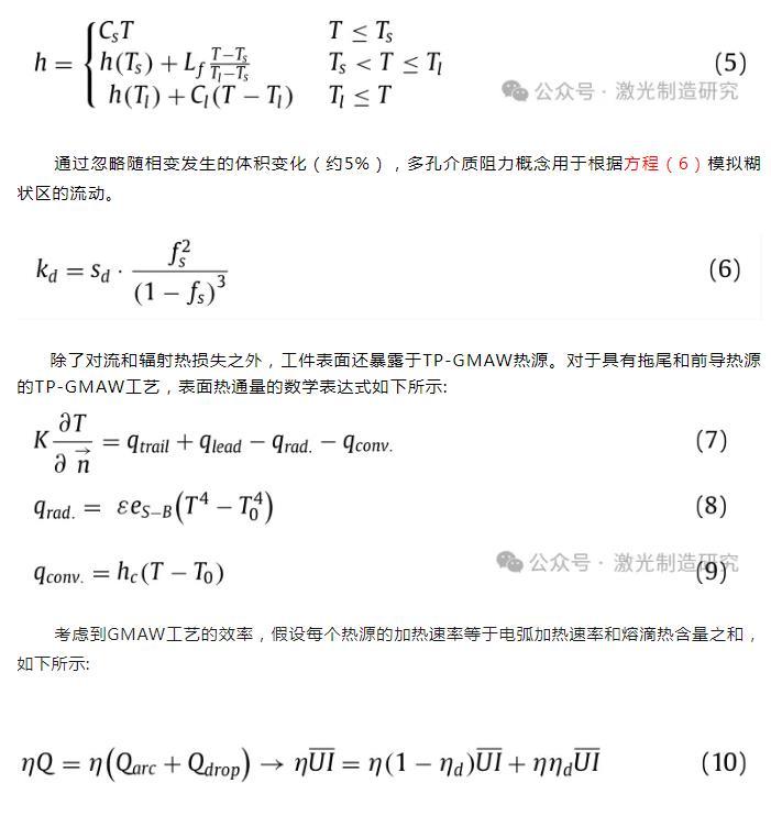 除了對流和輻射熱損失之外,工件表面還暴露于TP-GMAW熱源。對于具有拖尾和前導熱源的TP-GMAW工藝,表面熱通量的數學表達式如下所示: