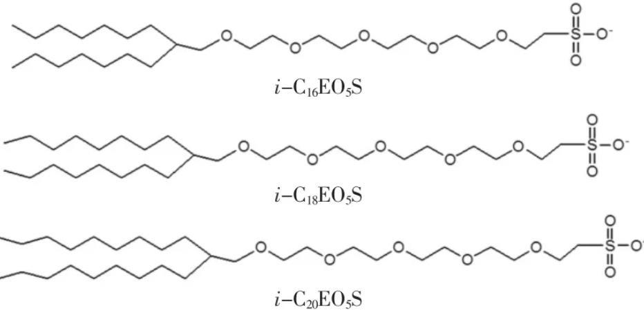 聚氧乙烯醚磺酸鹽類表面活性劑是一類具有優良性能的陰離子-非離子型表面活性劑,受到了研究者的關注。但此類表面活性劑結構與降低界面張力性能之間的關系尚有待深入研究,尤其對于親油基含有支鏈烷烴結構的聚氧乙烯醚磺酸鹽的研究成果較少.直鏈陰離子-非離子表面活性劑自身降低界面張力的能力有待提高,而支鏈化則是提高降低界面張力能力的有效手段。