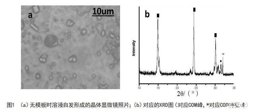 草酸鈣能夠形成3種水合物:一水草酸鈣草酸鈣(CaC204?H20,COM),二水草酸鈣(CaC204?2H20,COD),三水草酸鈣(CaC204?3H20,COT)。其中,一水草酸鈣是人類腎結(jié)石的主要成分。草酸鈣水合物是一種重要的仿生材料的研究體系。這3種草酸鈣晶體的熱力學(xué)穩(wěn)定性分別是:COM>COD>COT。本研究采用十八胺LB膜為模板來誘導(dǎo)草酸鈣晶體生成,并探討LB誘導(dǎo)晶體成核與生長的機(jī)理。