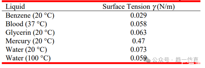 表面張力系數只與液體本身狀態有關,常見液體的表面張力(系數)如下: