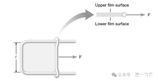 液體的表面張力促使液面收縮,對滑塊有一個向左的拉力,當我們用一個向右的力與之平衡時,可以獲得力的大小,然后與滑塊的長度一起可以算出表面張力系數。