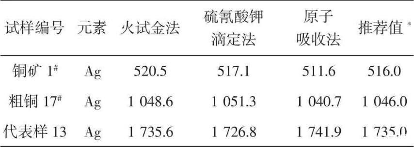 按試驗(yàn)方法,用不同含量的銅物料樣品進(jìn)行分析,并與其它測定銀元素方法的分析結(jié)果對照,結(jié)果見表4。