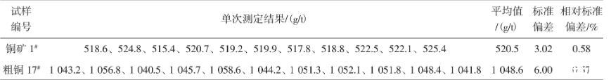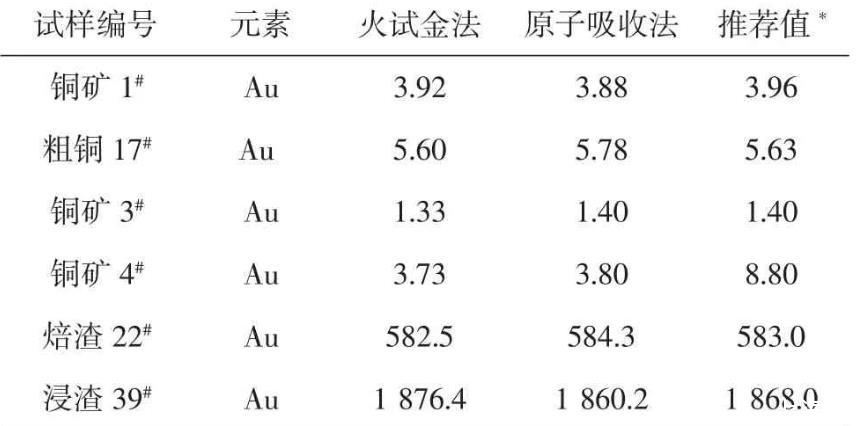 按試驗(yàn)方法,用不同含量的銅物料樣品進(jìn)行分析,并與其它測定金元素方法的分析結(jié)果對照,結(jié)果見表5。