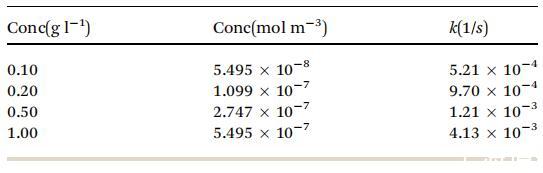 如表 2 所示,速率常數取決于體積 微凝膠顆粒的濃度。 但是依賴是 不是線性的。 這可能表明吸附 過程本身相當復雜,取決于細節 界面上粒子的構型。 更深入的分析 這些方面超出了當前工作的范圍。
