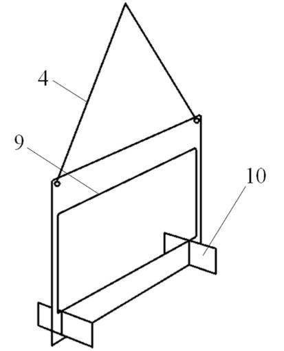 拉力框的設計是本次測試能否成功的關鍵之一,其結(jié)構(gòu)如圖3,與通用的拉力框有很大不同。其形狀如漢字中“口”字的形狀,由厚0.25mm薄鋁片制成。上部底緣稱之為刀口(9),長l=50mm,刀口與液面接觸后拉起液膜(2)。拉力框兩側(cè)各寬3mm,其作用是保持拉起的液膜的穩(wěn)定,使之不會過早斷裂。拉力框底部設有張開的與框面垂直的翼片(10),可防止拉力框擺動。拉力框通過輕軟細線懸掛于力敏傳感器(5)上,通過拉動懸線(4),可調(diào)整拉力框與液面的平行度。