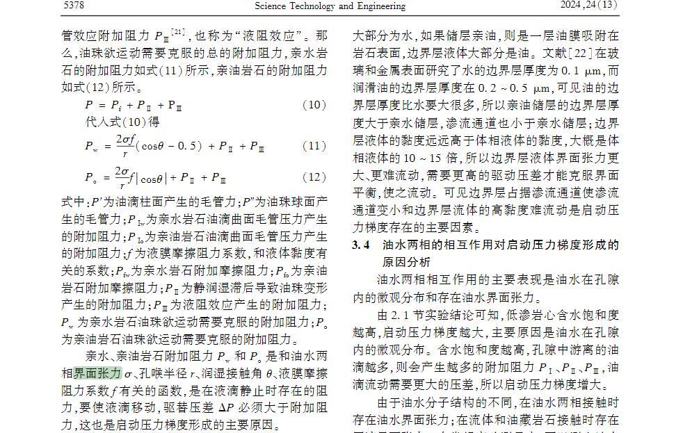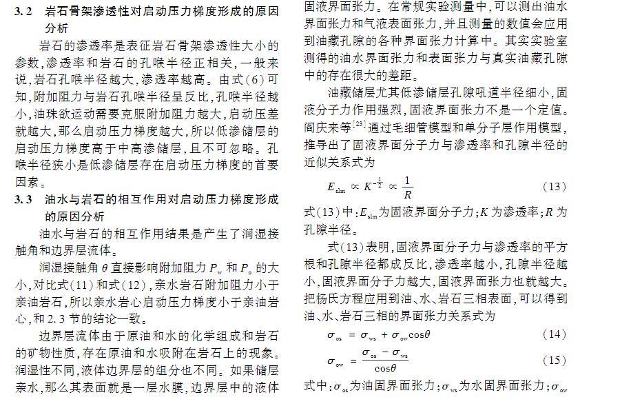 油水兩相的相互作用對(duì)啟動(dòng)壓力梯度形成的原因分析