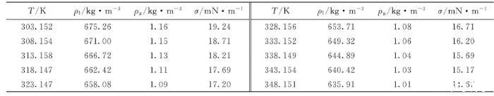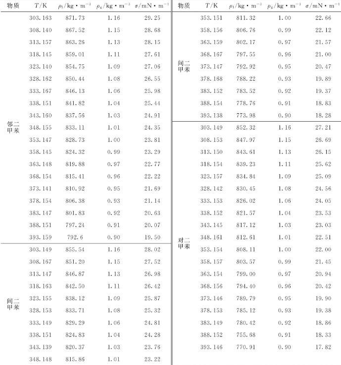 表4鄰二甲苯、間二甲苯和對二甲苯表面張力擬合參數(shù)