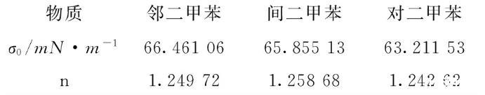 表3鄰二甲苯、間二甲苯和對二甲苯表面張力實驗結(jié)果