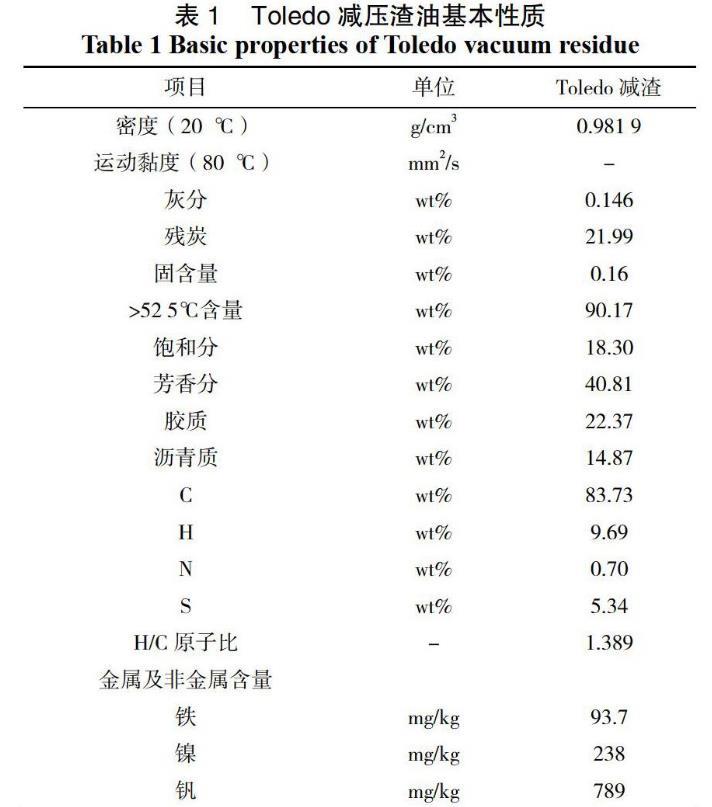 對(duì)于懸浮床反應(yīng)器的研發(fā)來(lái)說(shuō),油品的物性模型需要在與傳統(tǒng)研究中更高溫度以及更高壓力的苛刻條件下建立,這樣就造成了傳統(tǒng)研究中所涉及基本模型不一定正確的后果。準(zhǔn)確模型的建立任重而道遠(yuǎn),相關(guān)模型的建立還需要更多實(shí)驗(yàn)、理論的探索和研究。本文將以極具代表性的Toledo減渣作為樣本,進(jìn)行其在懸浮床加氫工藝條件下的界面張力以及黏溫關(guān)系曲線的近似模擬和計(jì)算。下面表一為T(mén)oledo減壓渣油的基本性質(zhì)如表1。