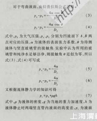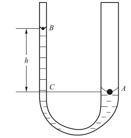 pc為液面下C點處的壓強。此外,在流體靜力學(xué)中,當液體靜止時U型管內(nèi)液面下A點與同水平面的C點壓強相同,即Pa=Pc.所以綜合以上各式可得