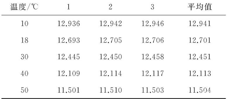 表1 U型管內徑測量值單位:mm