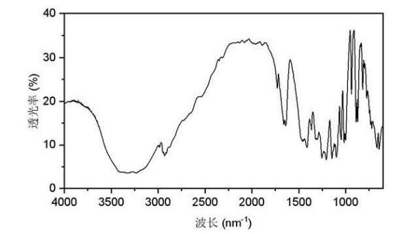 使用ATR附件,掃描背景去除雜峰后將取少量多羥基烷基季銨鹽放在測試位置開始進行紅外光譜掃描。在3300nm1附近的寬吸收峰可歸屬為羥基吸收峰,亞甲基的吸收峰分別位于2900nm1和1200~1400nm1附近,1100nm1處為CF的吸收峰區。