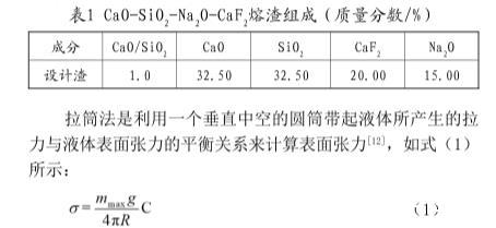 拉筒法和靜滴法測定連鑄結(jié)晶器保護渣表面張力(一)