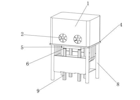 優(yōu)選的,所述環(huán)境控制系統(tǒng)上設(shè)有多個連接管,多個連接管的頂端與臺面固定連接,且與稱重箱相連通。