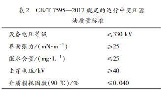 表2GB/T7595—2017規定的運行中變壓器