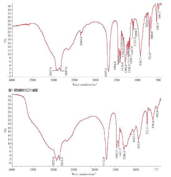 由硬脂酸合成的甜菜堿型表面活性劑及其中間產(chǎn)物的檢驗(yàn)是通過紅外譜圖進(jìn)行的,具體(見圖1~圖3)。