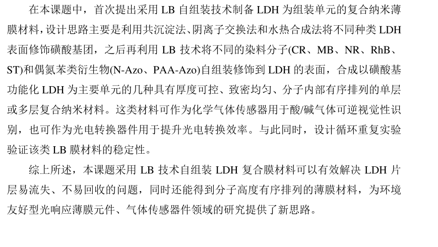 LDH/染料復(fù)合LB膜組裝過程的多樣化和化學氣體傳感機理研究