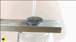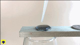 正是由于這個(gè)力,硬幣上的水滴能夠凸起來(lái),在極限值到來(lái)之前,液滴都不會(huì)倒塌。