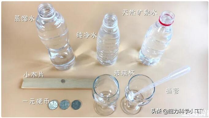 為何會(huì)出現(xiàn)這個(gè)結(jié)果呢?這是水的表面張力引發(fā)的現(xiàn)象。由于蒸餾水和純凈水里面的礦物質(zhì)等微量元素已經(jīng)除去,而天然礦泉水中含有較豐富的礦物質(zhì),因而水的表面張力略大于其它兩種水。所以,在同樣大小的硬幣表面能夠承受更多的液滴。