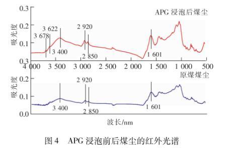 利用紅外光譜儀獲得添加劑浸泡前后煤塵的紅外光譜。