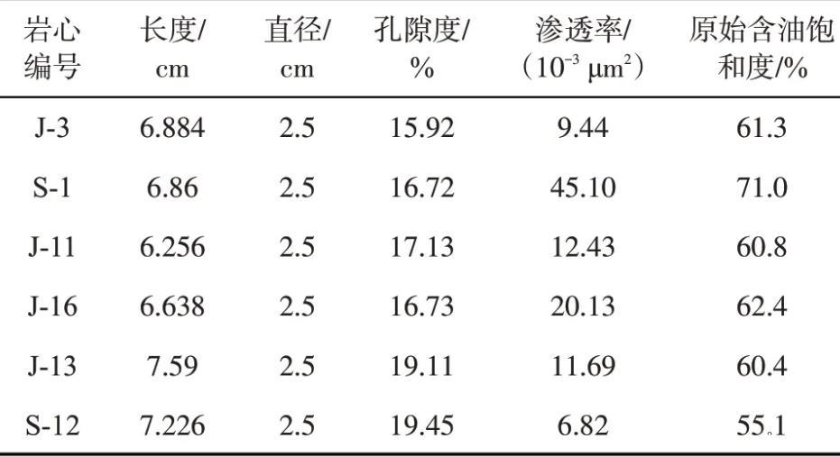 表2巖心物性參數(shù)