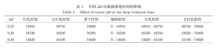 表1不同Δθ對液滴演化時間的影響