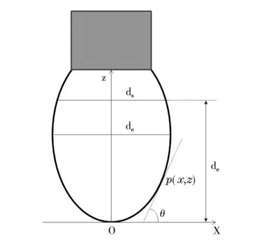 根據Young-Laplace理論,對于具有軸對稱的外形輪廓的液滴,當表面張力與重力處于靜力平衡時,懸滴的輪廓可用下列方程描述[13]