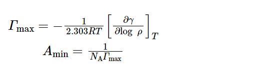 通過鉑環法在室溫下進行表面張力測定,參考GB/T 5549-2010。繪制出表面張力-濃度對數(γ-lg c)曲線。使用公式(1)和(2)對飽和吸附量(Гmax)和單個分子占據最小表面積(Amin)進行計算。