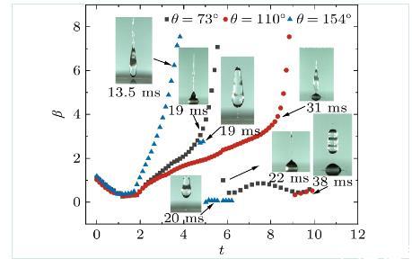 圖10液滴拉伸系數與不同接觸角的關系(We=17.8、Cae=0.068)