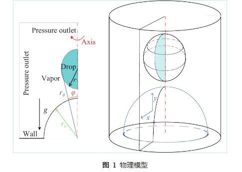 雖然,很多學(xué)者對Leidenfrost現(xiàn)象進(jìn)行了一定研究,但是大部分研究成果聚焦于高溫平面上的液滴動(dòng)力學(xué)與傳熱特性,而非平面上Leidenfrost現(xiàn)象的研究非常有限。但是,液滴撞擊高溫曲面廣泛存在于電子工程、機(jī)械工程、動(dòng)力工程、化學(xué)工程等領(lǐng)域。如液滴撞擊高溫球面,常見于流化催化裂化和流化焦化等工藝,這一過程影響著多種過程系統(tǒng)的性能,尤其是對于生產(chǎn)更有價(jià)值的汽車燃料具有重要意義。鑒于此,本文進(jìn)一步探究液滴與高溫球面撞擊過程中液滴的Leidenfrost現(xiàn)象,采用數(shù)值模擬方法進(jìn)行研究,使用Fluent軟件構(gòu)建了二維軸對稱數(shù)值模型,采用VOF模型及Lee模型,分析液滴撞擊高溫球面的動(dòng)力學(xué)特性與傳熱特性,探討Leidenfrost現(xiàn)象的機(jī)理及各因素的影響規(guī)律。