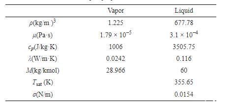 式中,db為液體蒸發(fā)時(shí)產(chǎn)生的氣泡直徑;χ表示液體表面吸附蒸氣分子的量,為調(diào)節(jié)系數(shù);M為摩爾質(zhì)量;R為通用氣體常數(shù),8.314 J/(mol·K);L為蒸發(fā)潛熱;在本文中,Acoeff取值為500.
