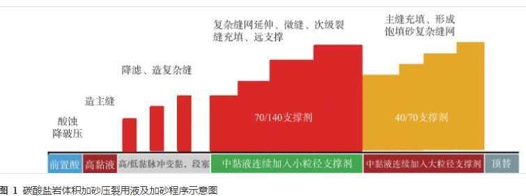 圖1碳酸鹽巖體積加砂壓裂用液及加砂程序示意圖