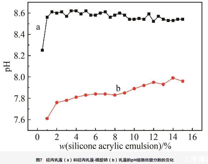 圖7硅丙乳液(a)和硅丙乳液-硫酸鈉(b)乳液的pH值隨質(zhì)量分數(shù)的變化