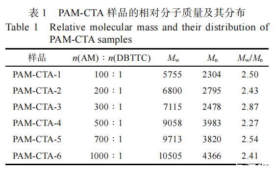 表1 PAM-CTA樣品的相對(duì)分子質(zhì)量及其分布