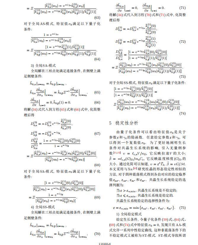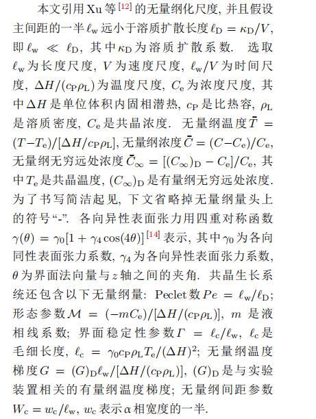 其中{CB,hB}是系統的基態,{e C,?h}是系統的擾動態.假設初始擾動態的范數共晶生長系統的定常解為[11]: