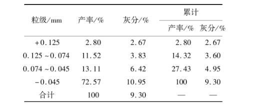 依據GB/T447—2008《煤炭篩分試驗方法》對煤樣進行小篩分試驗,浮選精煤樣品粒度組成見表2。由表2可以看出,煤樣中細粒物料含量非常高,其中-0.045 mm粒級產率高達72.57%,而+0.125 mm粒級產率僅有2.8%。該煤樣粒度細,比表面積大,脫水時煤粒之間由于毛細作用存在大量毛細水,而且煤表面還存在大量的吸附水,難以通過機械力進行有效脫除。此外,樣品中細粒含量高、粗粒含量少也會造成脫水過程中顆粒之間供水穿透的孔隙較少,脫水阻力較大。