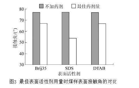 圖3最佳表面活性劑用量時煤樣表面接觸角的對比