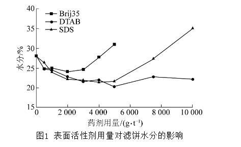 圖1表面活性劑用量對濾餅水分的影響