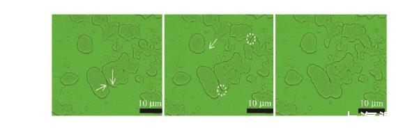 圖4顯微鏡下觀察的柴油乳液動態破乳過程