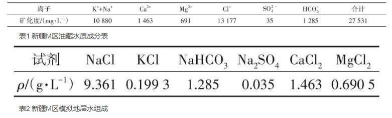 實驗用水為新疆M區油藏模擬地層水,M區