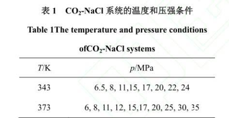 表1 CO2-NaCl系統(tǒng)的溫度和壓強(qiáng)條件