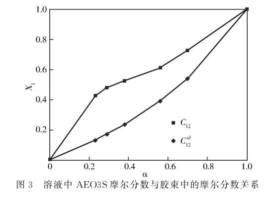 圖3溶液中AEO3S摩爾分?jǐn)?shù)與膠束中的摩爾分?jǐn)?shù)關(guān)系
