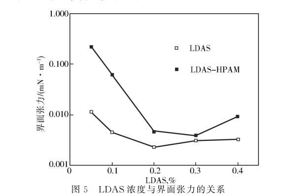 圖5 LDAS濃度與界面張力的關(guān)系