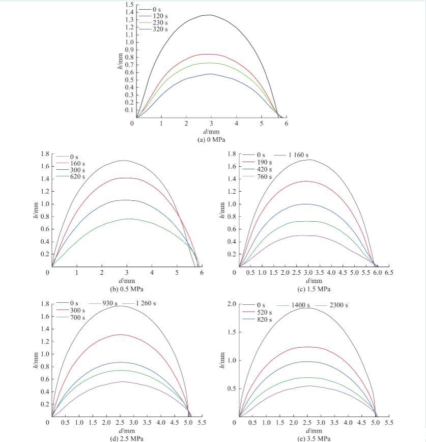 圖8不同時間及不同瓦斯壓力條件下的水滴輪廓
