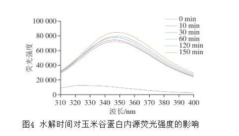 圖4水解時間對玉米谷蛋白內源熒光強度的影響