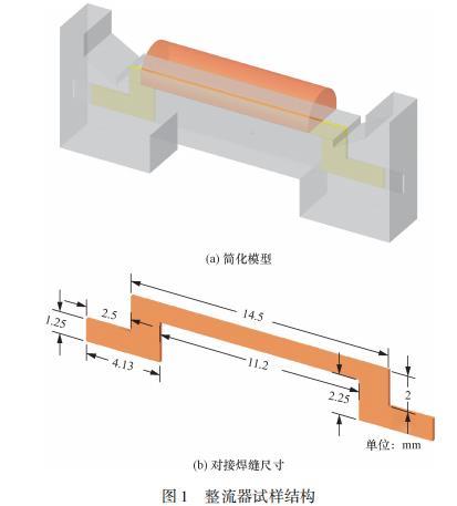 圖1(a)為基于實(shí)際釬焊情況的試樣結(jié)構(gòu)簡化模型,橙色部分為釬料涂覆區(qū)域,放置在焊縫上方,材料為鎳基高溫合金;黃色部分為待焊接區(qū)域,該焊縫兩側(cè)表面互相平行,間距為0.2mm;灰色部分為母材,加熱過程中不發(fā)生形變,不與釬料相互溶解。整流器試樣結(jié)構(gòu)對接焊縫尺寸如圖1(b)所示。