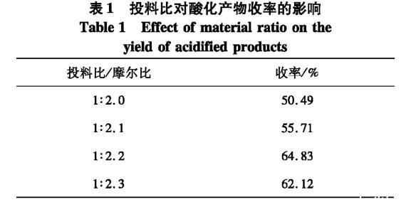 表1投料比對酸化產物收率的影響