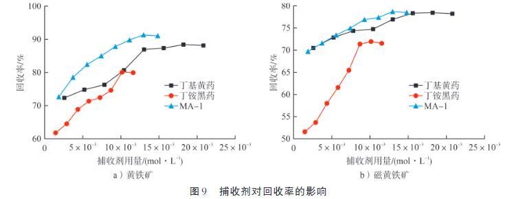 圖9捕收劑對(duì)回收率的影響
