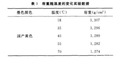 4)按以上步驟分別測量18~70℃的容重(見表3)。
