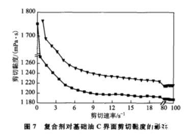 圖7復(fù)合劑對(duì)基礎(chǔ)油C界面剪切黏度的影響